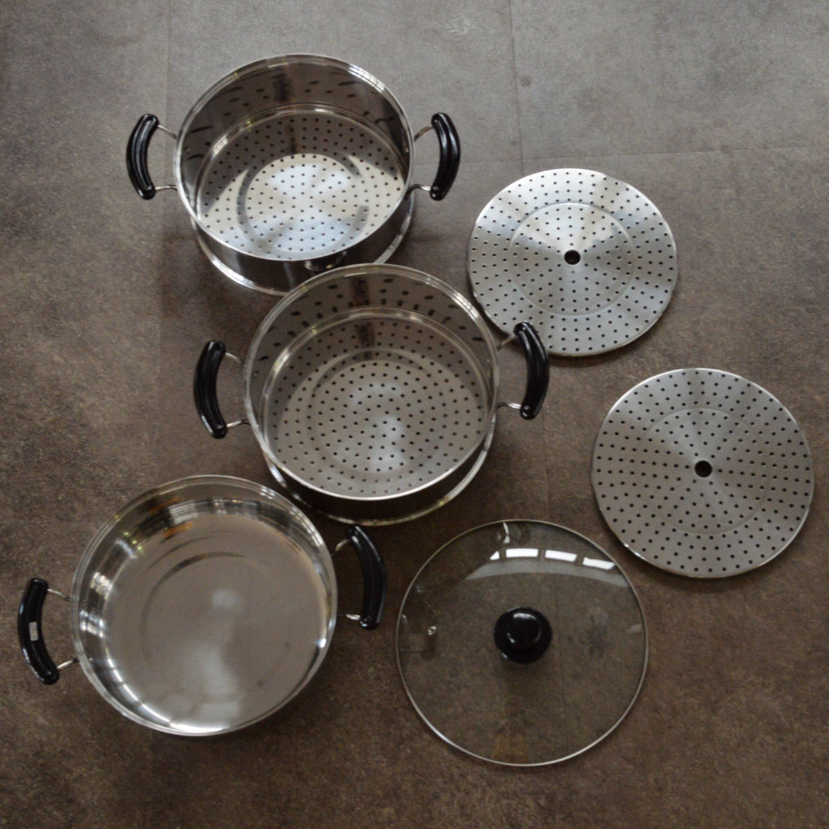 ●丈夫なステンレス製のたっぷり蒸せる3段タイプの蒸し器です。