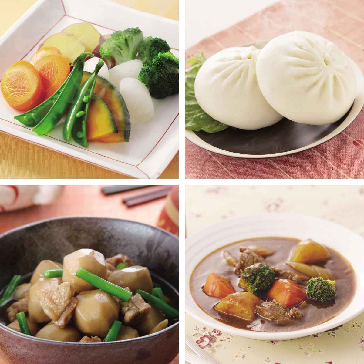 新構造の上鍋により、目皿の細かい穴から均一に蒸気が出て全体をムラなく蒸すことができます。電子レンジでの蒸し料理とは違い、外側からじっくりと加熱。時間は少々かかりますが、ムラなく均一に温められます。