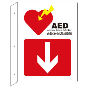 ●心停止などの急を要する時に一刻も早い除細動を行う為に、「AED」の所在を示す為の標識板です。