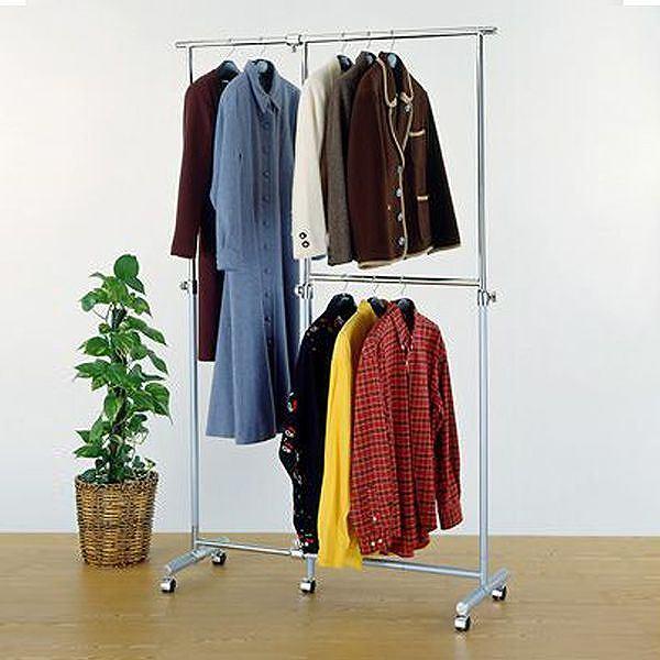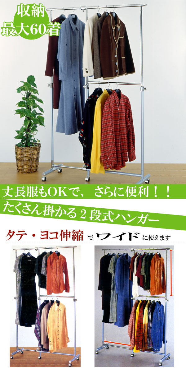 2段パイプハンガー 縦・横伸縮 サイドフック付き